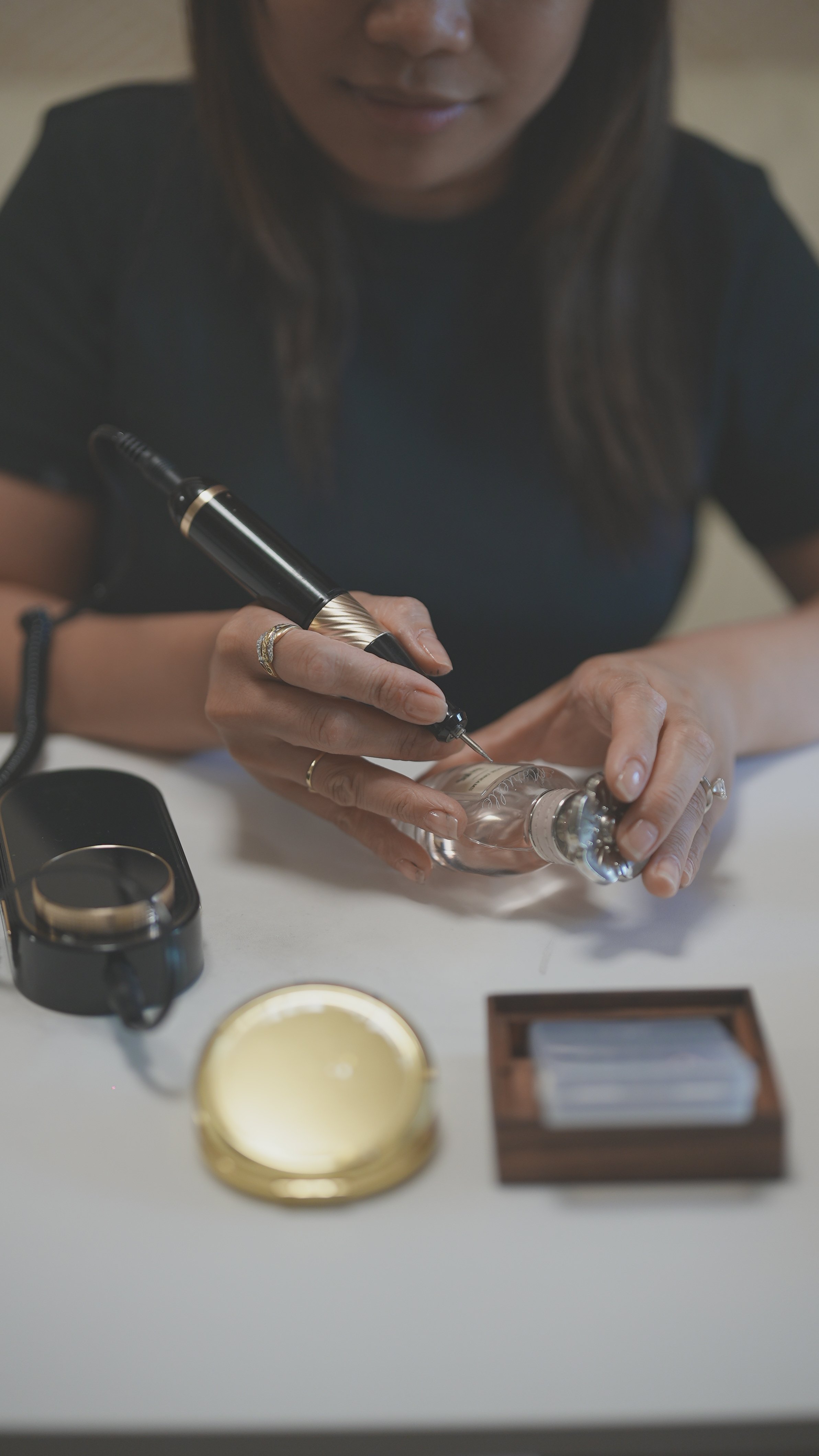 Permanent personalisation on glass, fragrance, metal, crystal and luxury products.